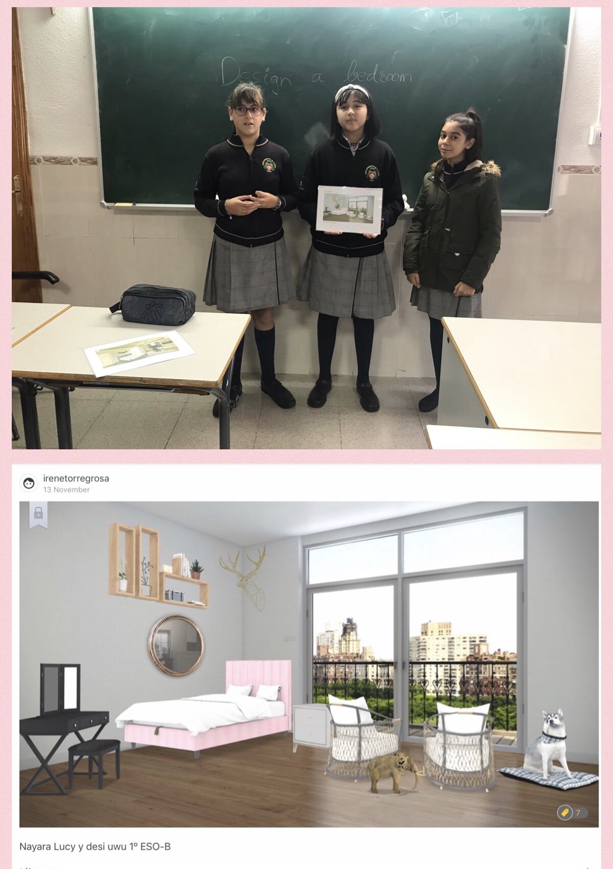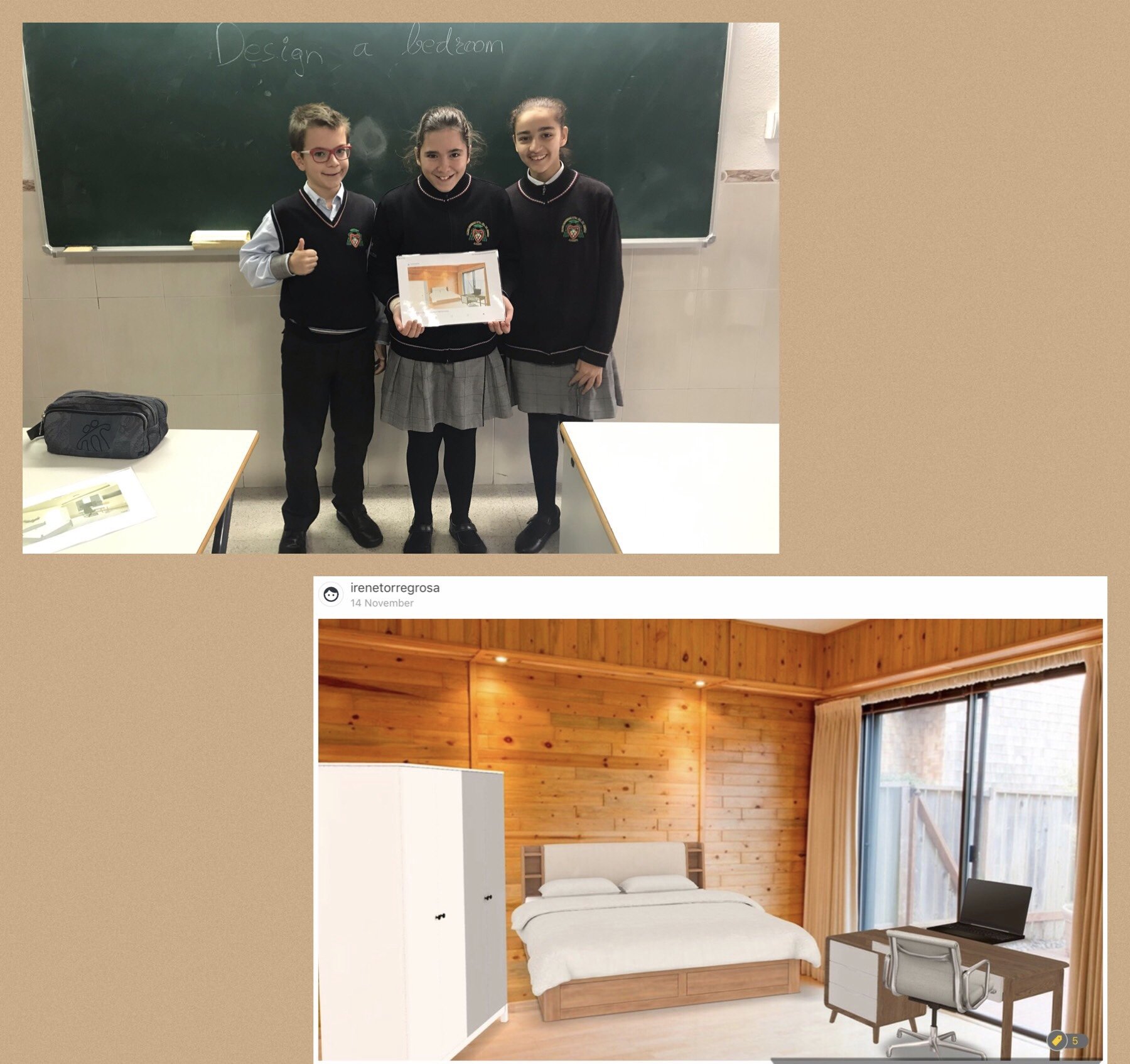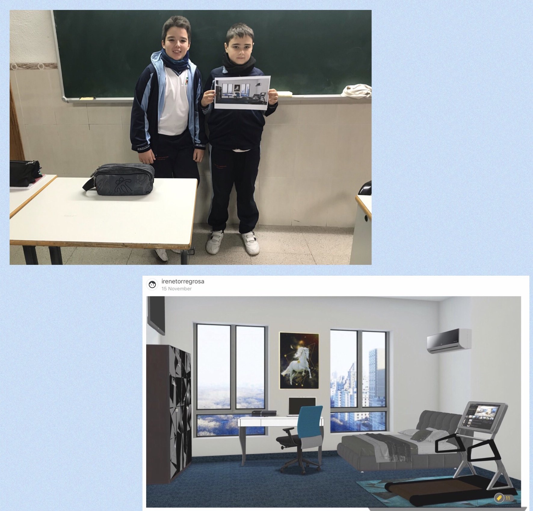 It has been a very creative and original activity to settle the vocabulary and grammar ideas of the unity of the houses and their decoration. We really liked to project and make the room of our dreams come true.