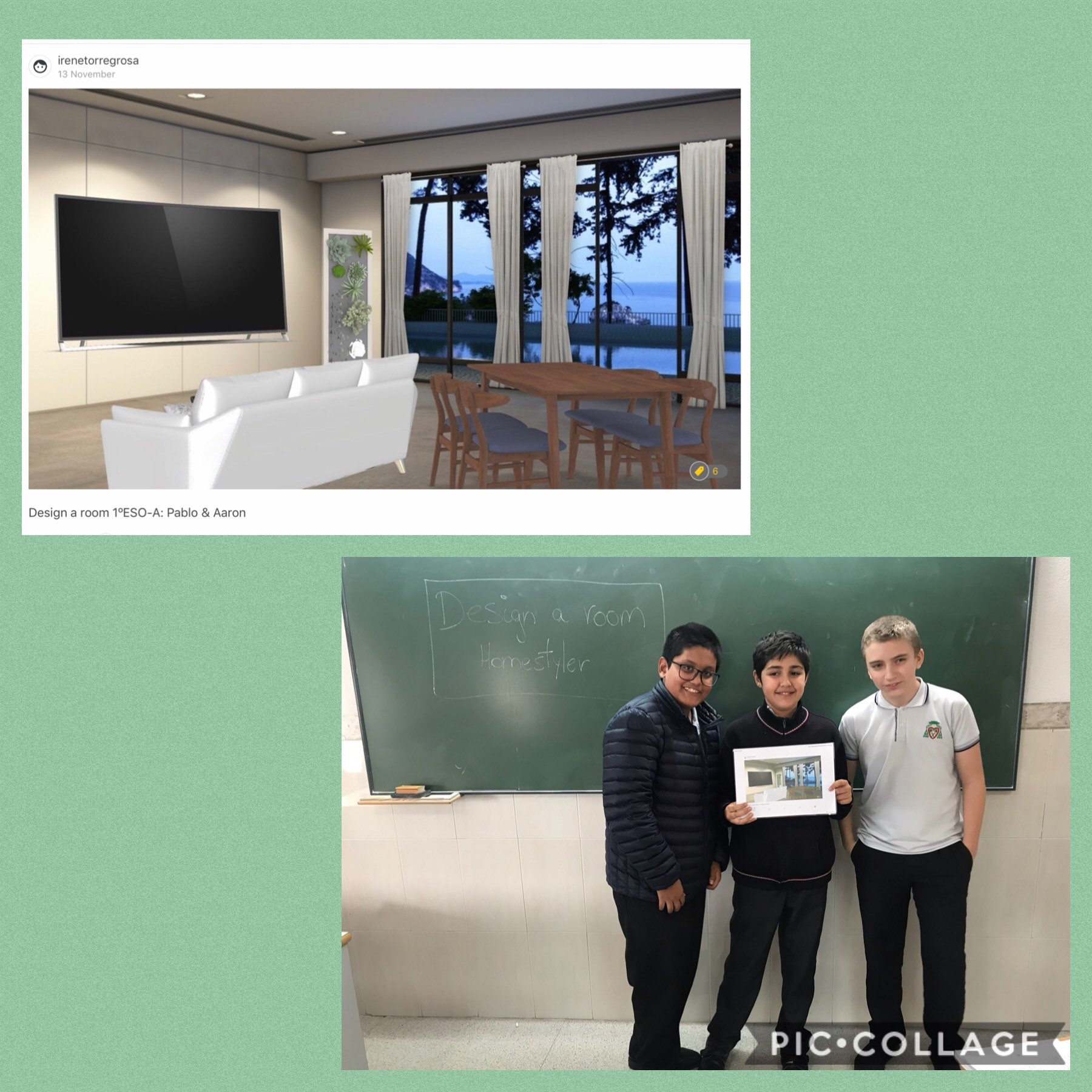 The students of 1ºESO in English class have made a very interactive activity where they have become true protagonists of their learning development. The objective of this theoretical-practical task is learned to use vocabulary to design as well as decorate a house. In a very active and enriching way they have made numerous creations as great designers for the rooms of a family home. (Los alumnos de 1ºESO en clase de inglés han realizado una actividad muy interactiva dónde ellos se han convertido en verdaderos protagonistas de su desarrollo de aprendizaje. El objetivo de esta tarea teórica-práctica se aprende a utilizar el vocabulario para diseñar así como decorar una casa. De una manera muy activa y enriquecedora han realizado numerosas creaciones como grandes diseñadores para las estancias de un hogar familiar).
