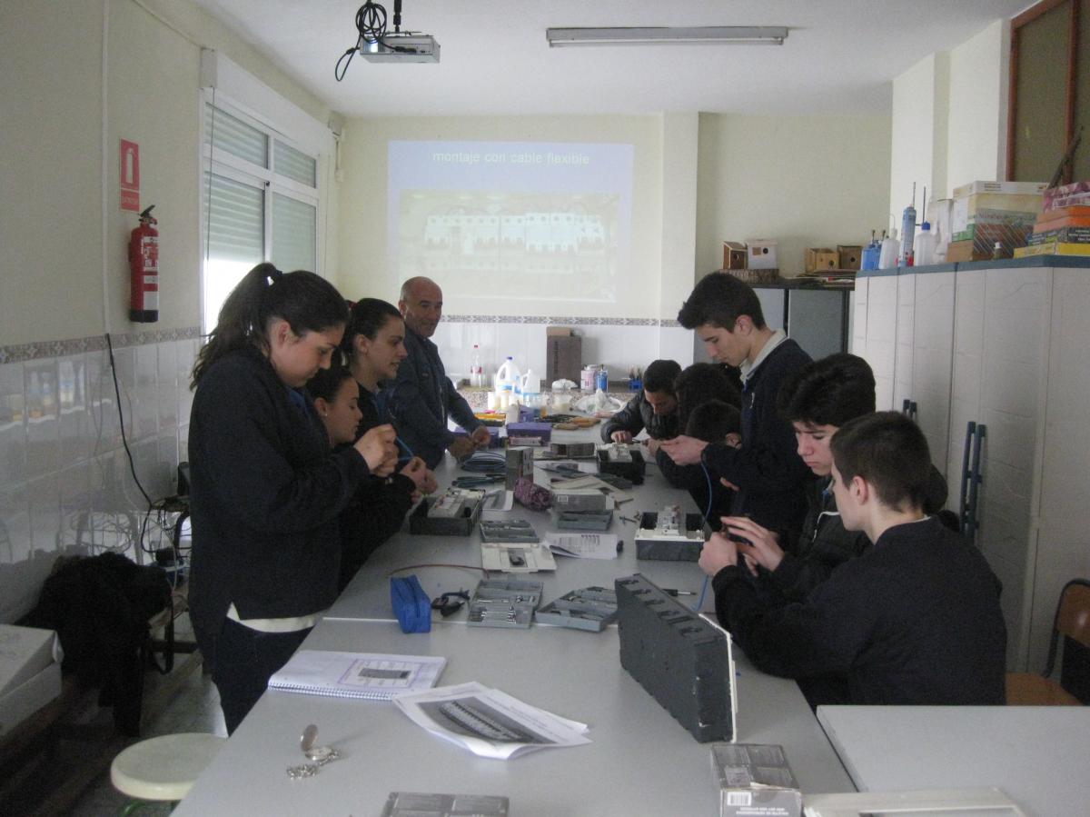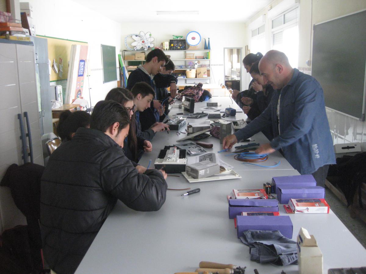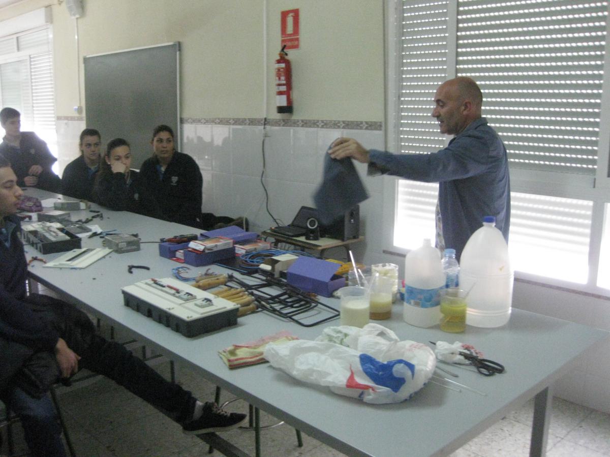 El lunes 9 de marzo José Casal, familiar de una alumna del centro y Técnico Superior en instalaciones electrotécnicas y centros de transformación, asistió al centro para ofrecer una clase teórico-práctica a alumnos de 4º curso de Educación Secundaria.