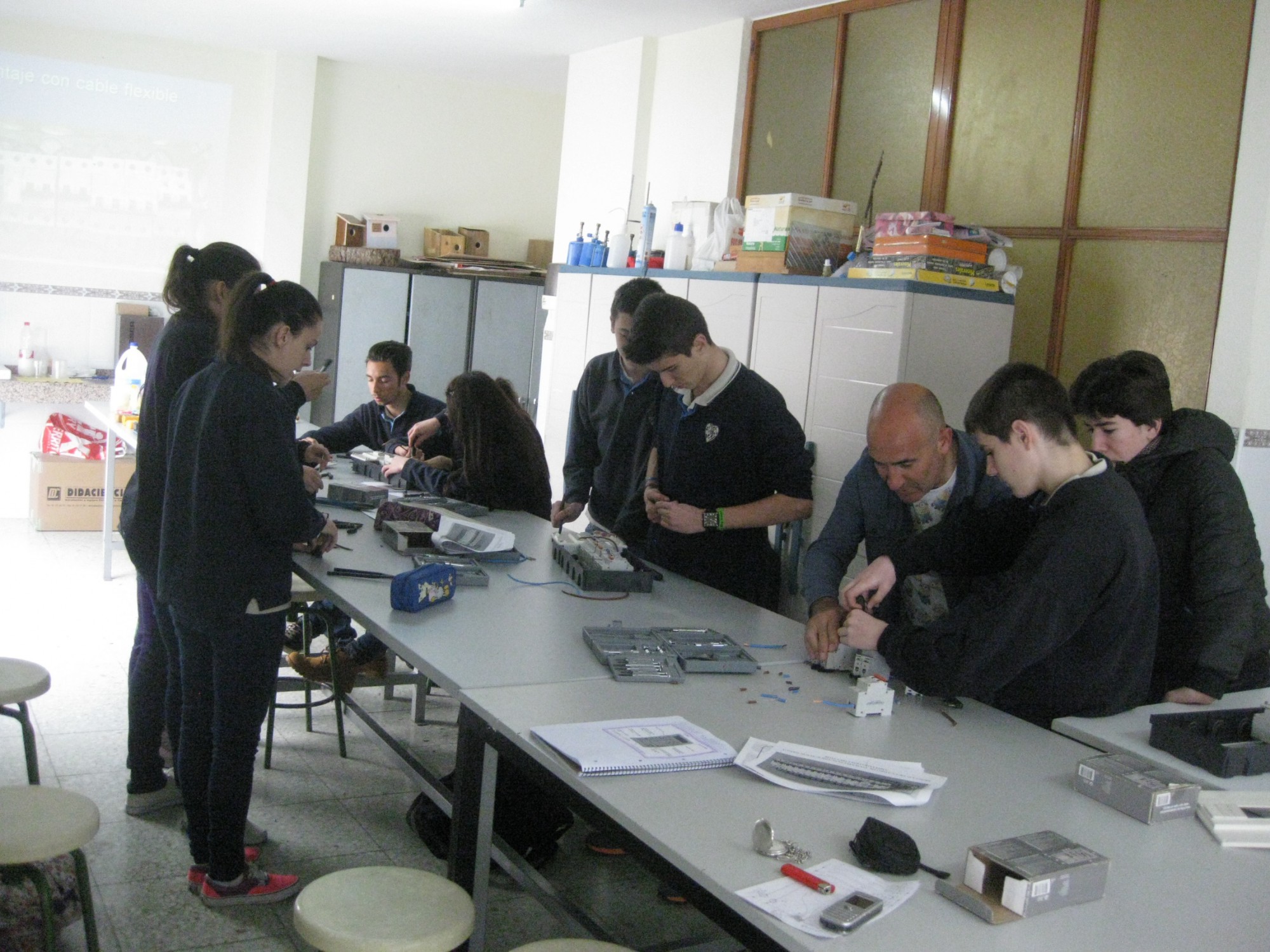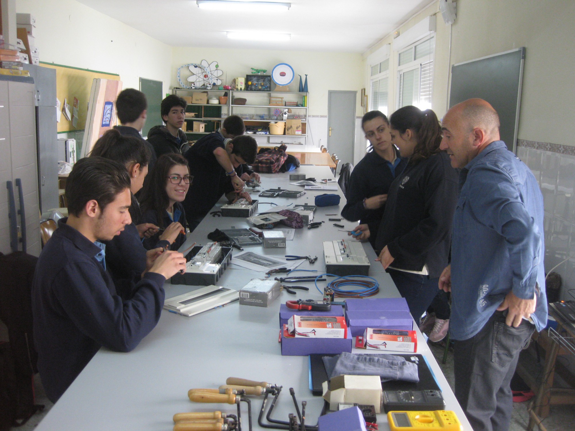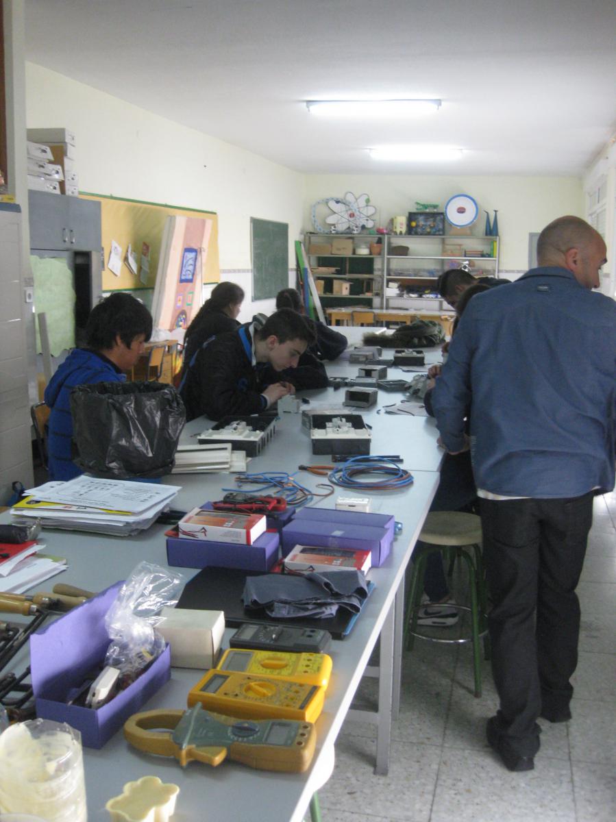 El lunes 9 de marzo José Casal, familiar de una alumna del centro y Técnico Superior en instalaciones electrotécnicas y centros de transformación, asistió al centro para ofrecer una clase teórico-práctica a alumnos de 4º curso de Educación Secundaria.