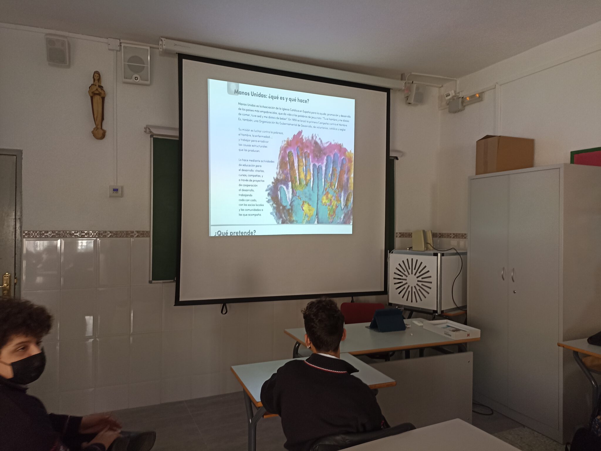 Durante la semana del 14 al 18 de febrero los alumnos de secundaria hemos trabajado, un año más, la tutoría de Manos Unidas. Esta actividad pretende sensibilizar a los alumnos en la lucha contra el hambre, la deficiente nutrición, la miseria, la enfermedad y la falta de educación. En definitiva, aumentar la conciencia y el compromiso de los alumnos para lograr un mundo más justo y más humano.