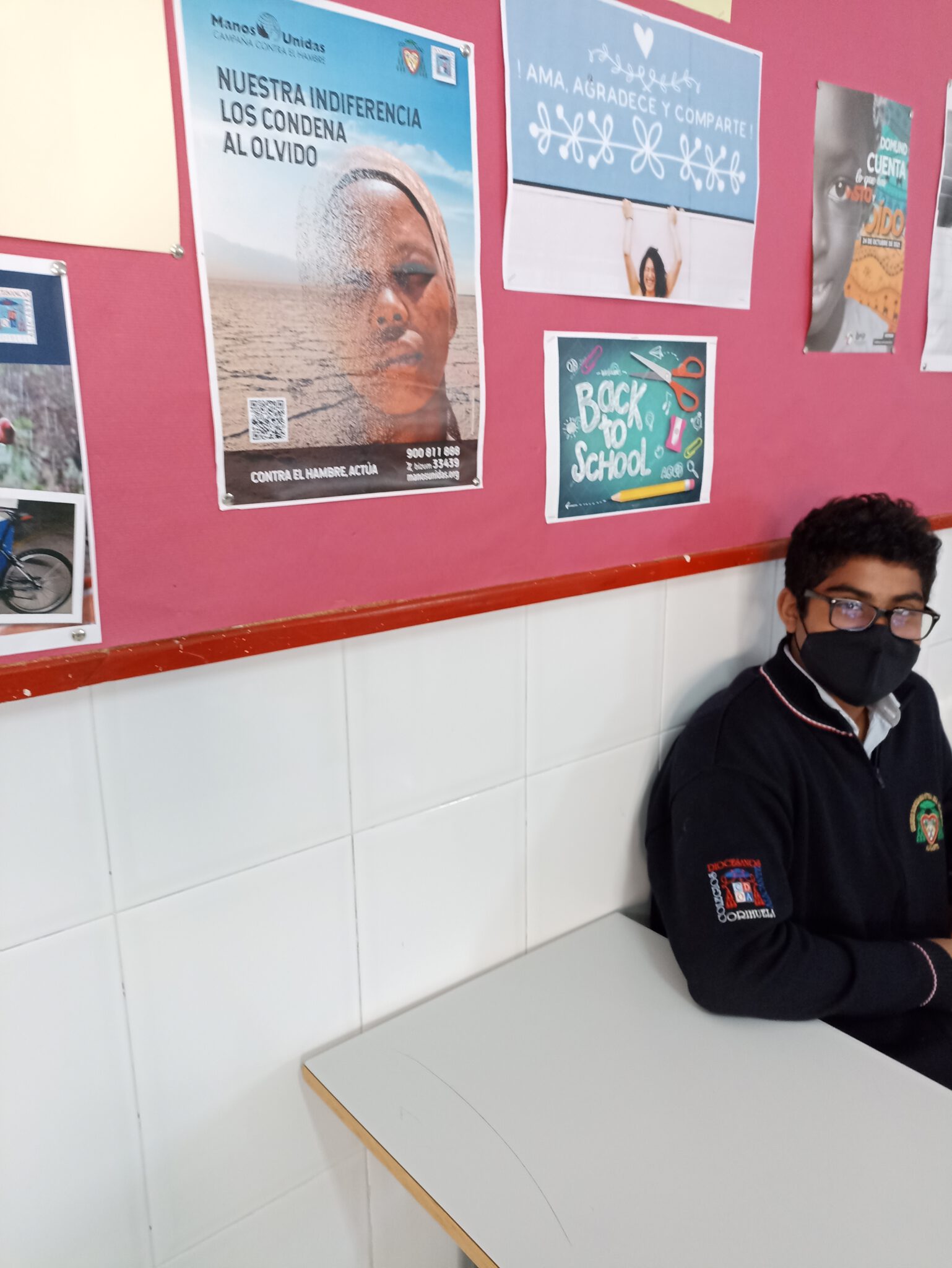 Como actividad novedosa el centro ha preparado una Rifa Solidaria, los alumnos de ESO pueden, previa aportación económica, elegir un número del mural de Manos Unidas. El premio al que optan es una estupenda bicicleta.