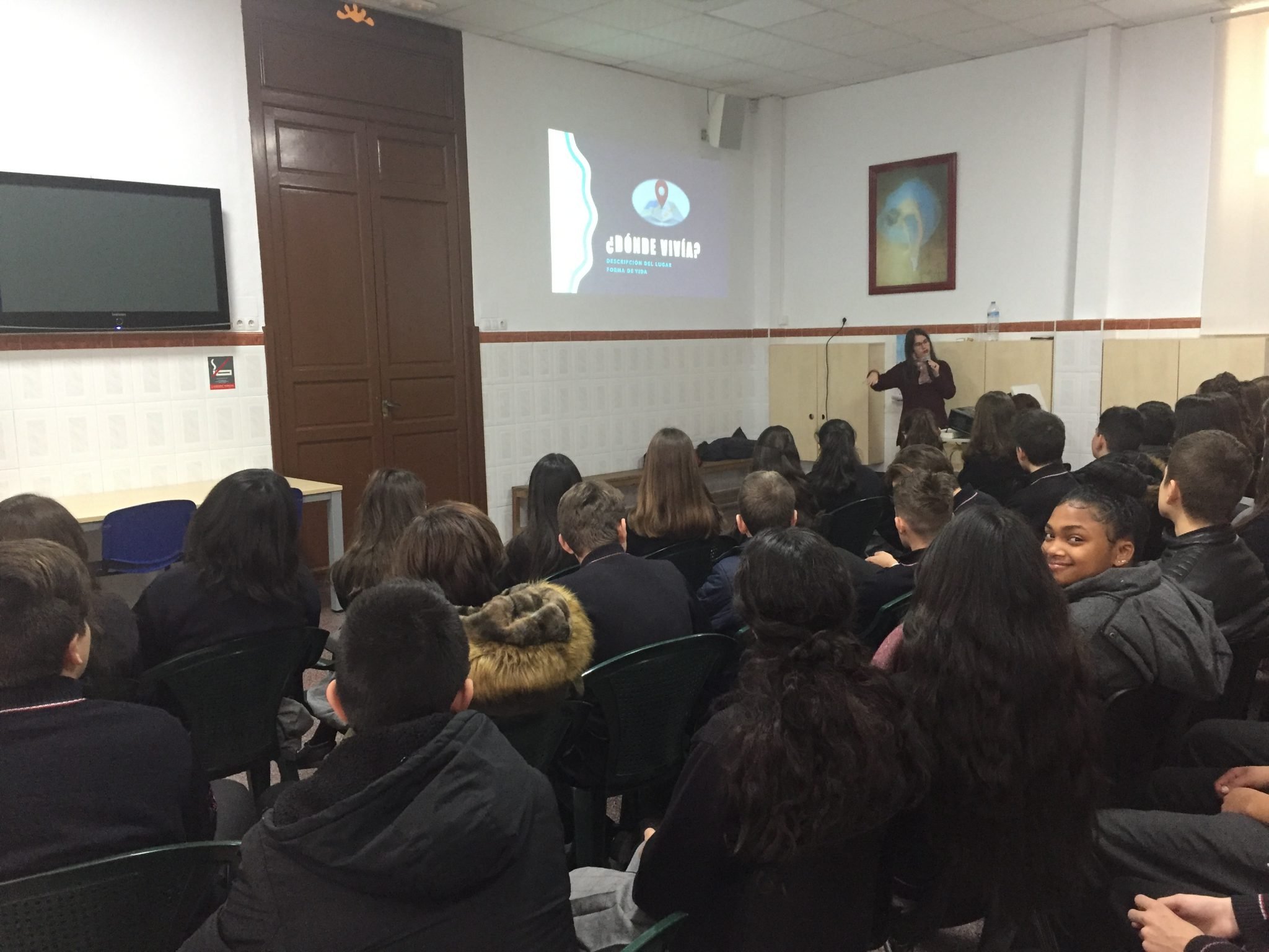 Seguidamente, explicó su experiencia en Venezuela donde le resultó más positiva ya que nos expuso las costumbres, el pueblo y vida diaria de todo lo que hizo durante 1 mes. Nos contó que fue a enseñar a un grupo de niños de diferentes edades que seleccionó ella porque sintió que era dónde más podía ayudarles. Además, nos enseñó como vivían y eran sus casas ya que algunos tenían la costumbres de dormir en hamacas y no camas así como ver que los techos de algunas de sus viviendas eran elaborados con paja.