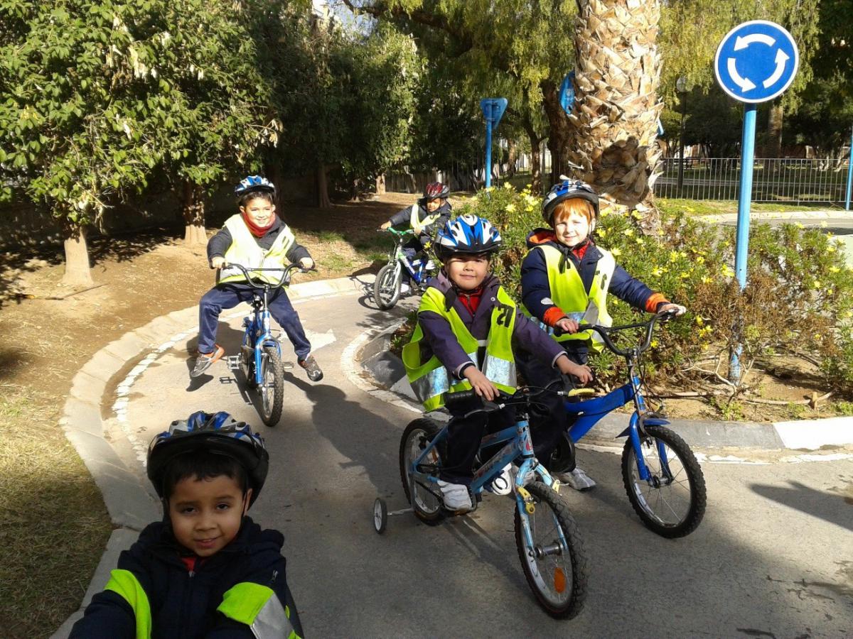 En el mes de Enero los alumnos/as de Educación Infantil visitaron durante una mañana el “Parque Infantil de Tráfico” de Alicante. Conocieron de manera divertida las normas básicas de educación vial mediante dos sesiones: una teórica con imágenes y juegos; y una práctica en la que realizaron diferentes circuitos con bicicletas, triciclos, coches, motos…