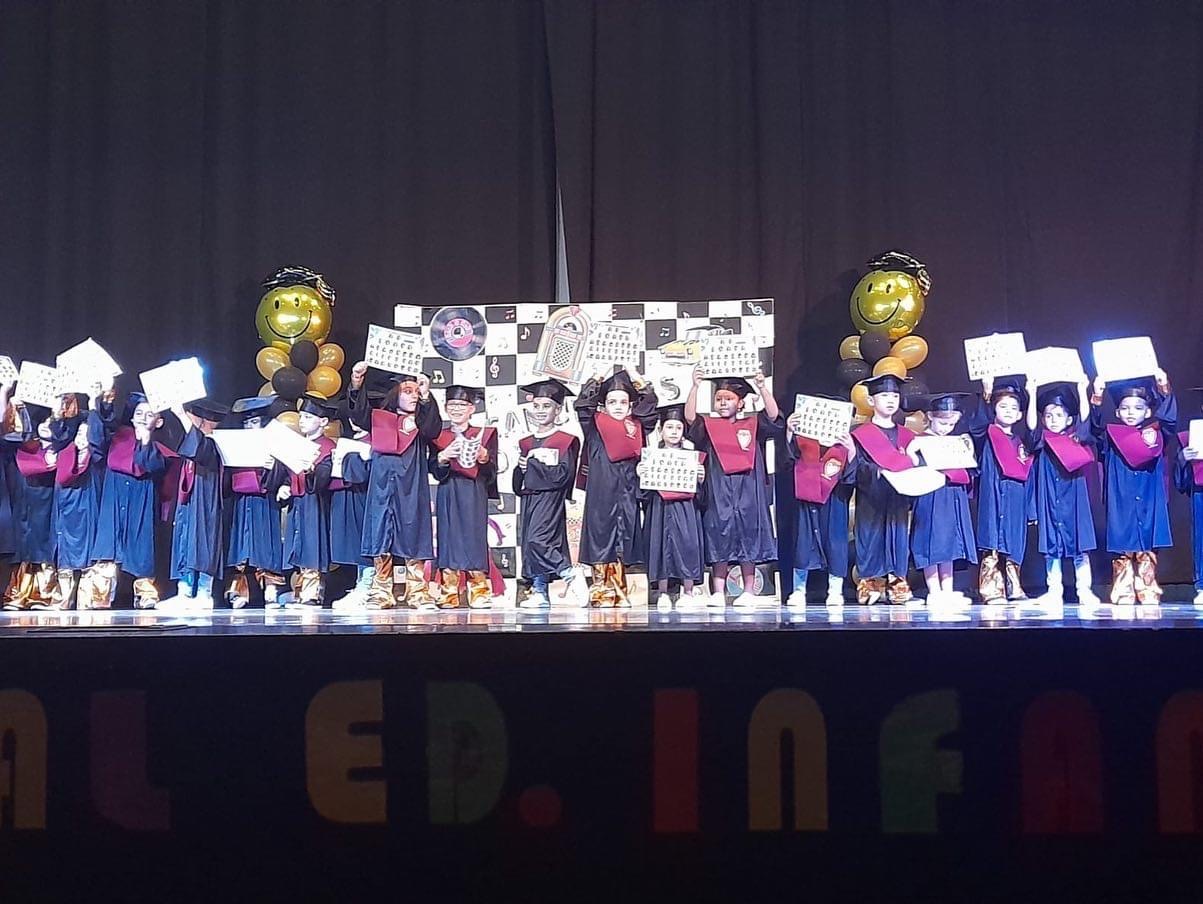 después de unos años marcados por restricciones cuyo objetivo era salvaguardar la salud de toda la Comunidad Educativa, este año la etapa de ED.INFANTIL sí ha podido preparar y disfrutar el ansiado FESTIVAL DE FIN DE CURSO, un festival marcado también por el acto de graduación de los alumnos de INF 5 años. ¡Qué bonito momento y qué emocionante, con sus togas y birretes!