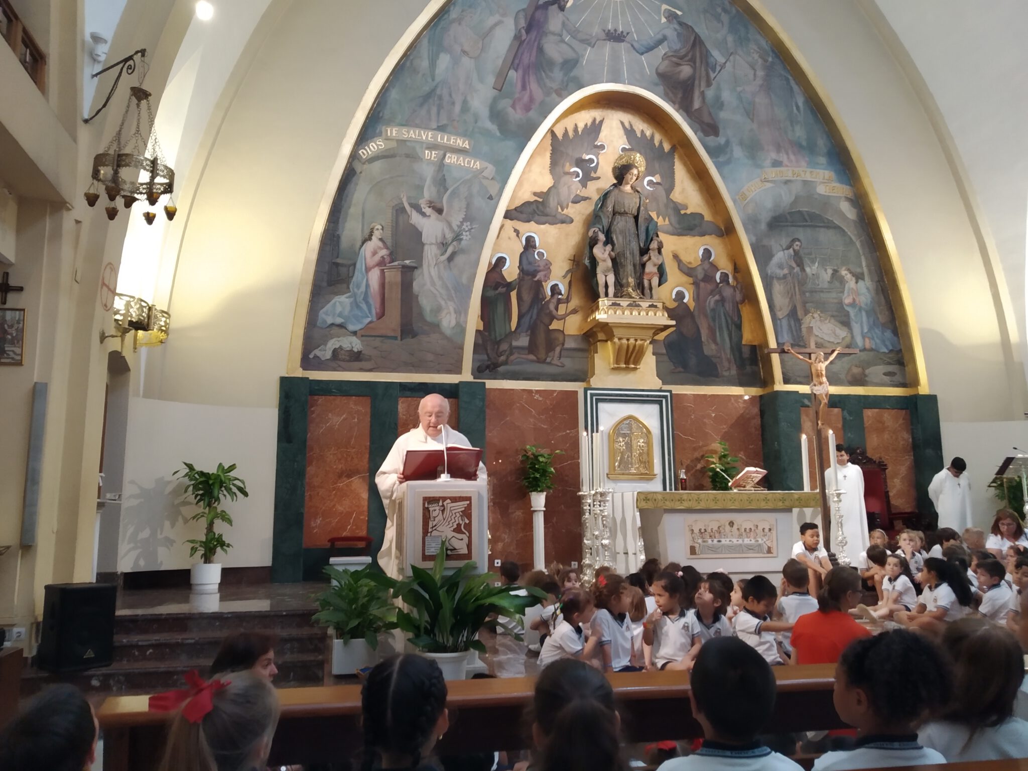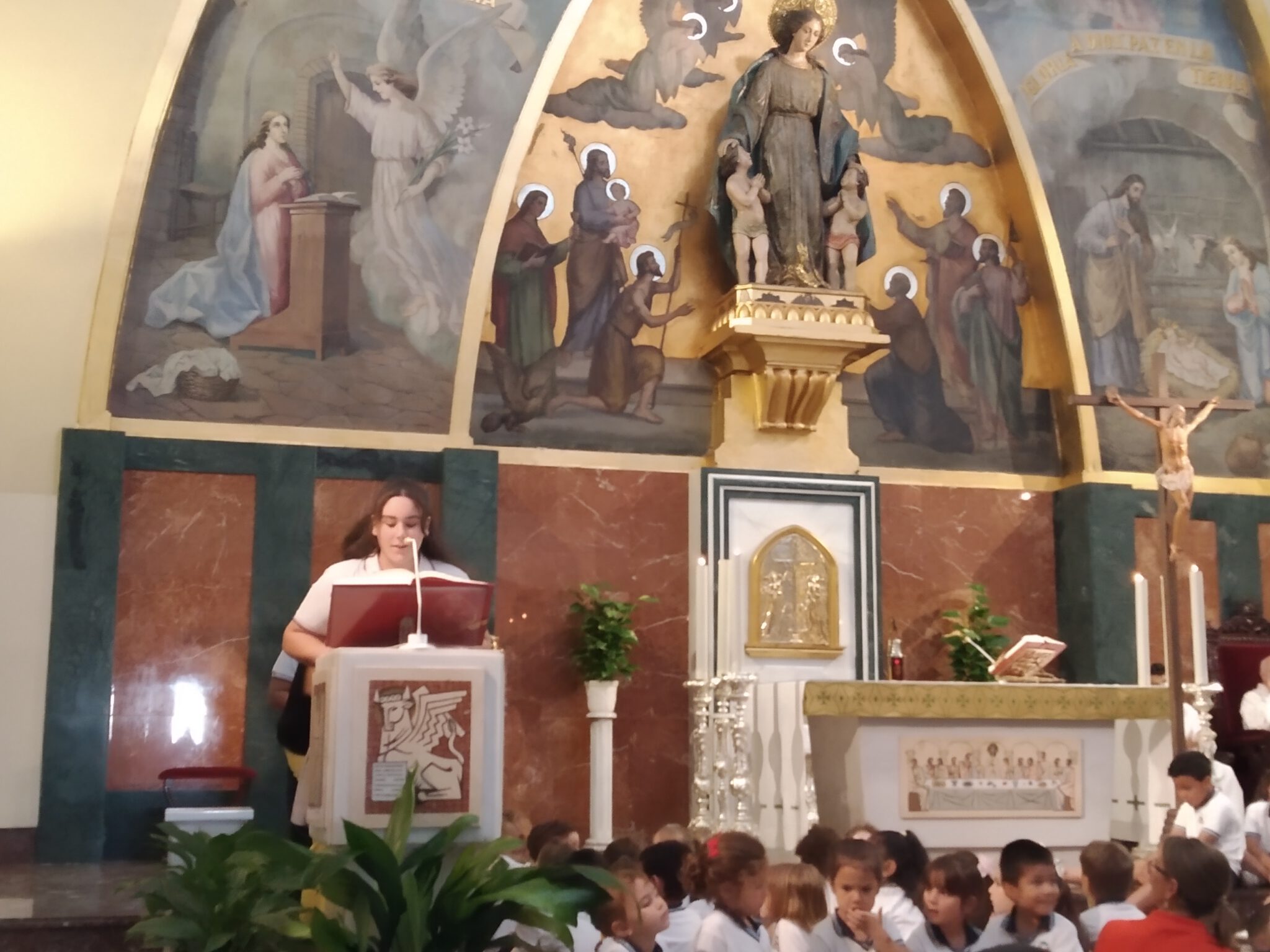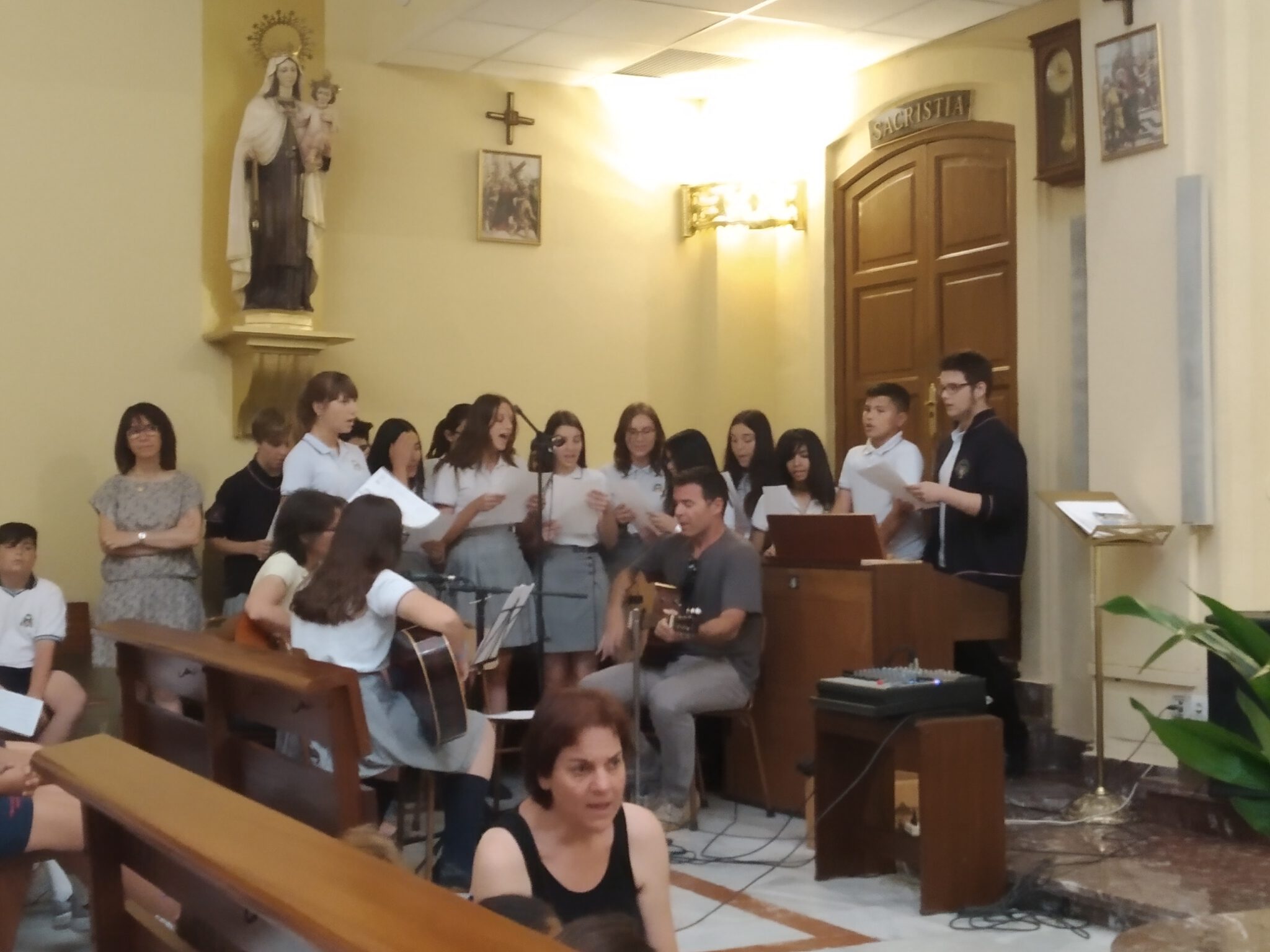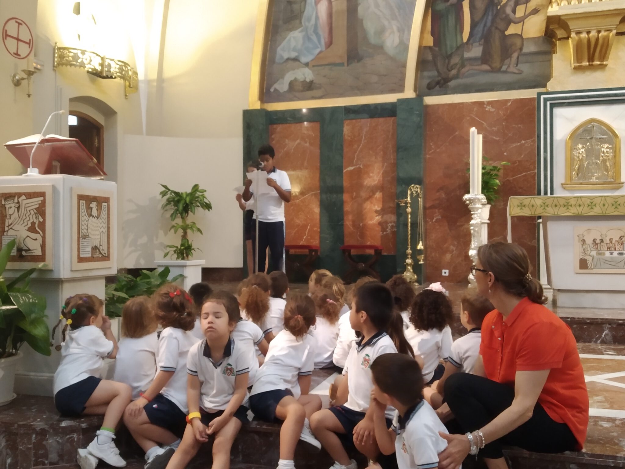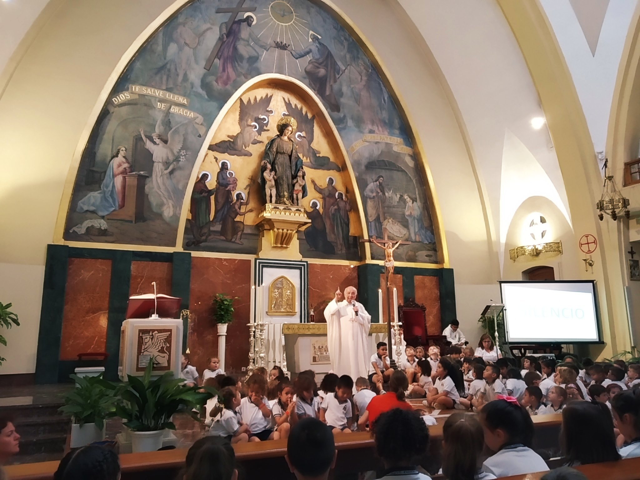 “Hoy, Señor, en este día todos los alumnos te damos gracias por tu constante presencia en nuestras vidas, porque nunca nos abandonas y siempre podemos contar contigo. Te damos gracias también por los buenos momentos vividos a lo largo del curso y también por los errores cometidos que nos han ayudado a crecer. Te damos gracias por nuestras familias que nos guían día a día por el buen camino, y también te damos gracias por nuestros profesores, por su generosidad, por estar ahí siempre para ayudarnos a crecer por dentro. Gracias por nuestros amigos y compañeros, con los que compartimos aula, juegos y trabajo. Y gracias por enseñarnos que en María tenemos un ejemplo para seguir a Jesús.”