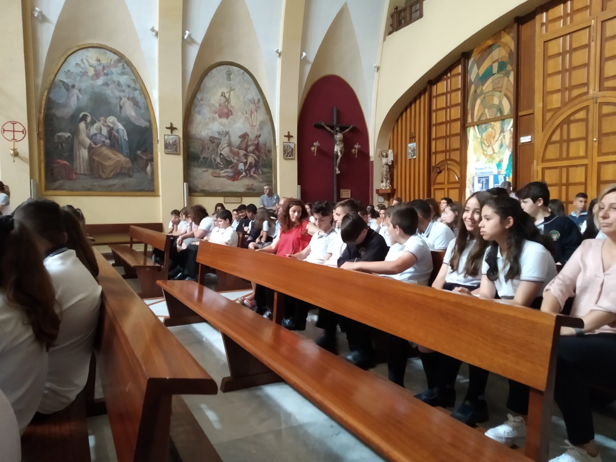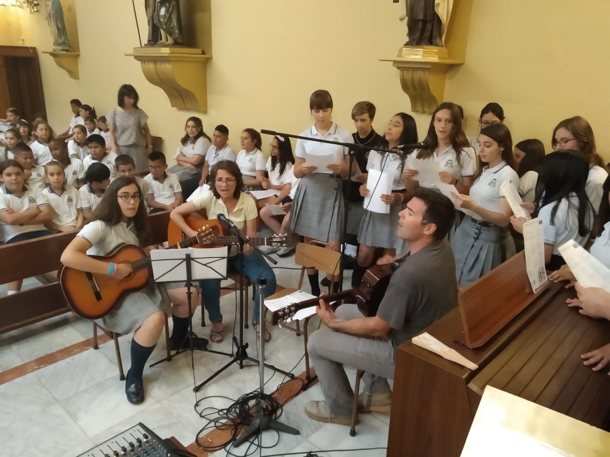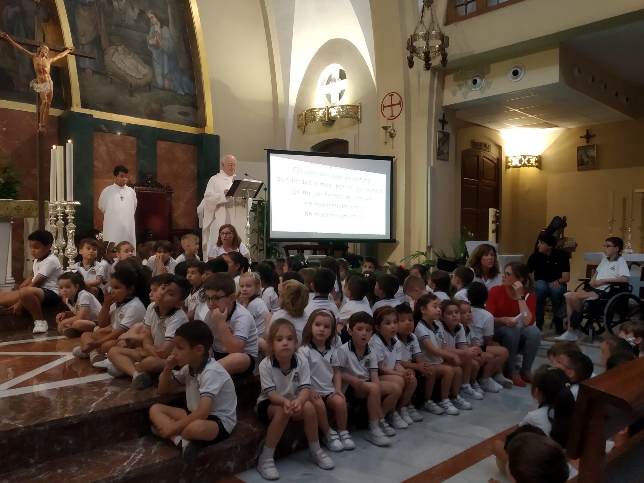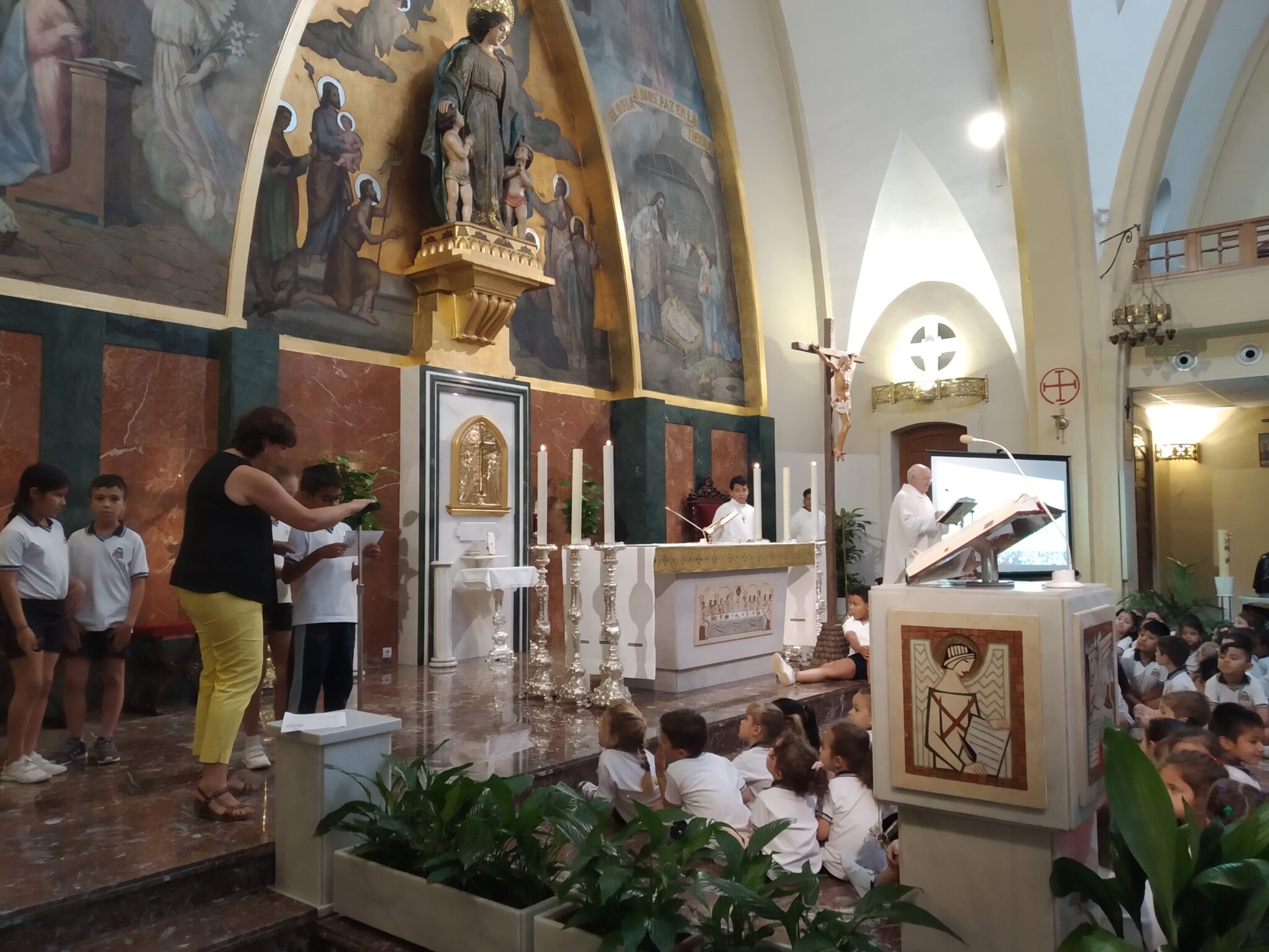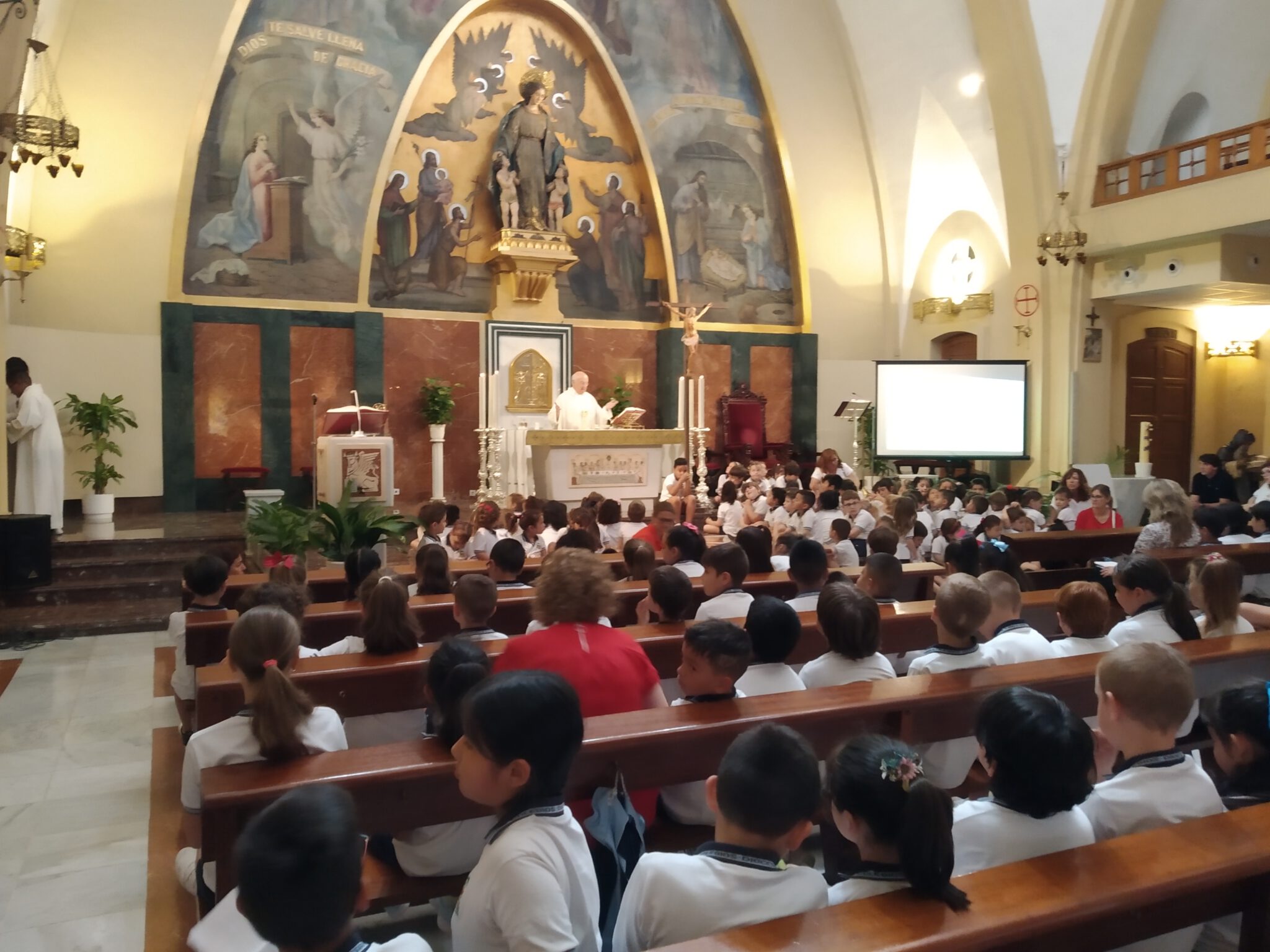 “Hoy, Señor, en este día todos los alumnos te damos gracias por tu constante presencia en nuestras vidas, porque nunca nos abandonas y siempre podemos contar contigo. Te damos gracias también por los buenos momentos vividos a lo largo del curso y también por los errores cometidos que nos han ayudado a crecer. Te damos gracias por nuestras familias que nos guían día a día por el buen camino, y también te damos gracias por nuestros profesores, por su generosidad, por estar ahí siempre para ayudarnos a crecer por dentro. Gracias por nuestros amigos y compañeros, con los que compartimos aula, juegos y trabajo. Y gracias por enseñarnos que en María tenemos un ejemplo para seguir a Jesús.”
