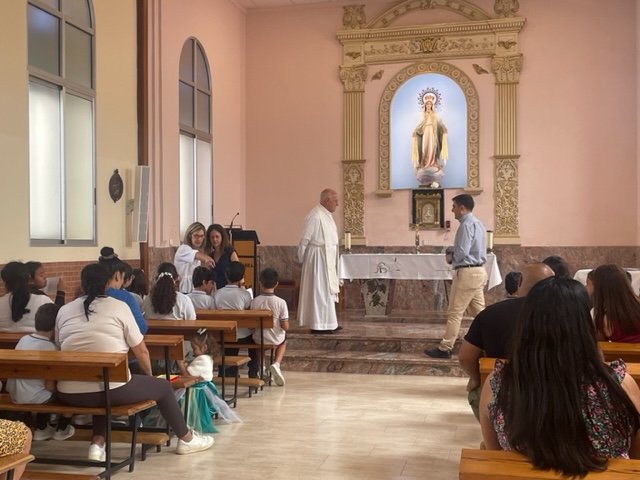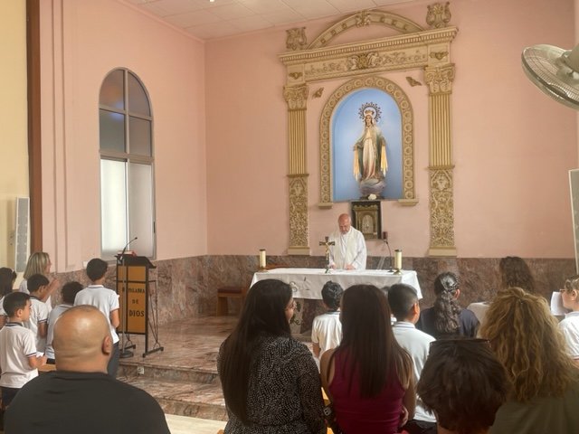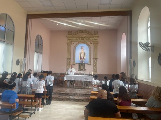 Como ya venimos haciendo varios años, el 26 de mayo participamos en una celebración de acción de gracias por los alumnos del colegio que han recibido la Primera Comunión este año.
