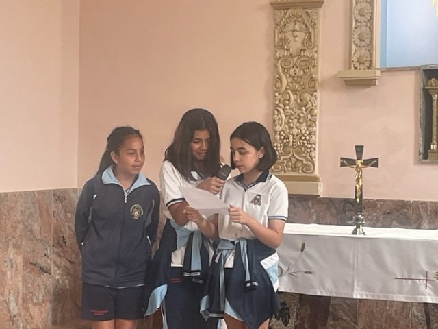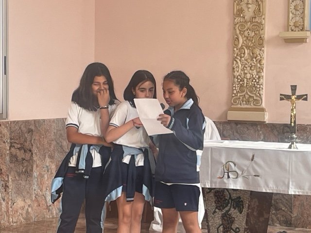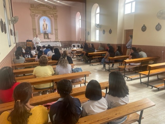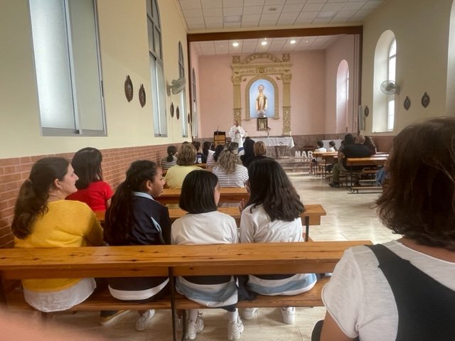 Después nos visitaron tres representantes de ITIO//J.M.V. (Juventudes Marianas Vicencianas) que con sus testimonios les invitaron a formar parte de ese movimiento juvenil, ofreciéndoles a continuar en ese camino de formación como amigos de Jesús y siendo así parte activa de la Iglesia cristiana.
