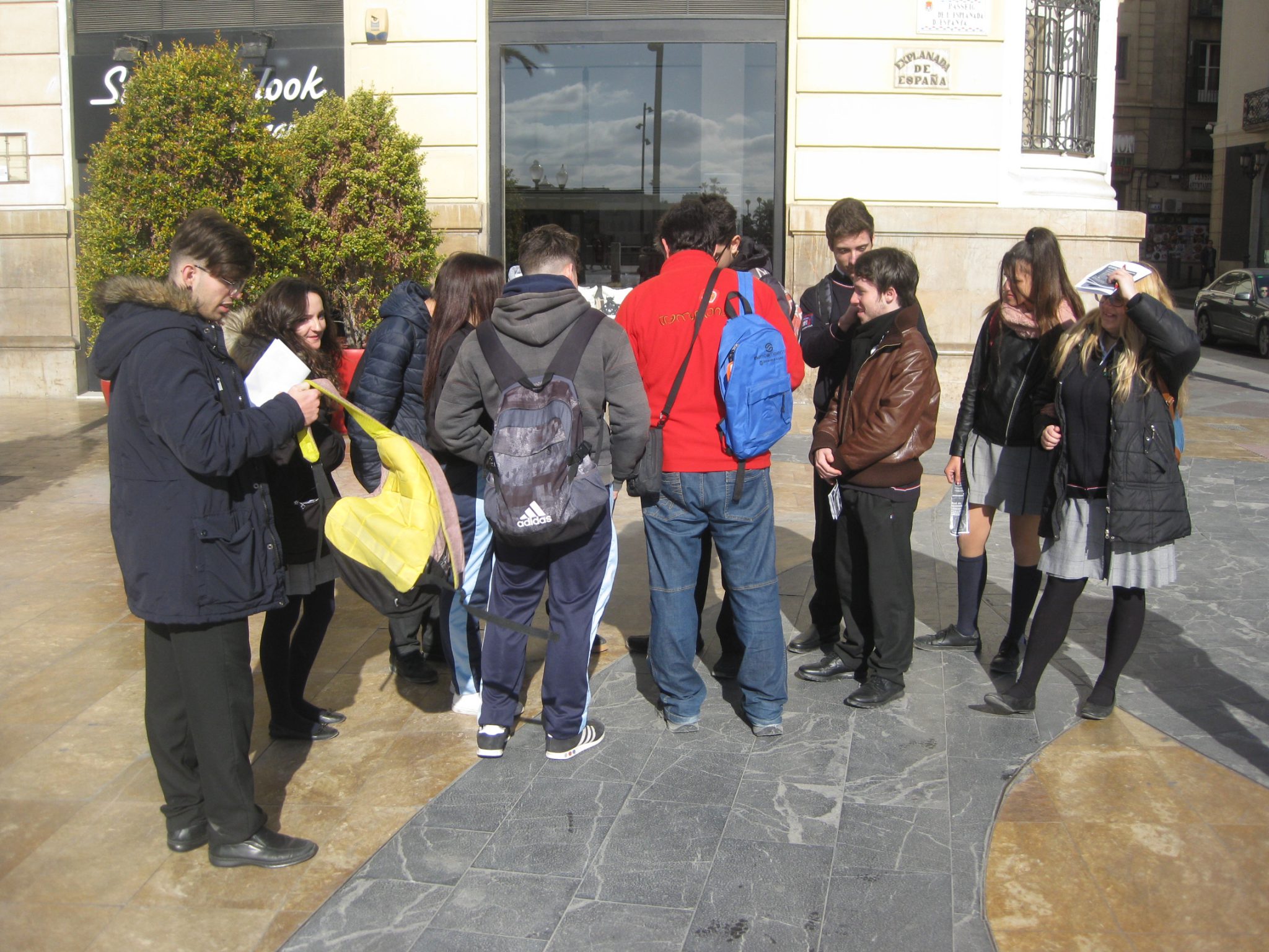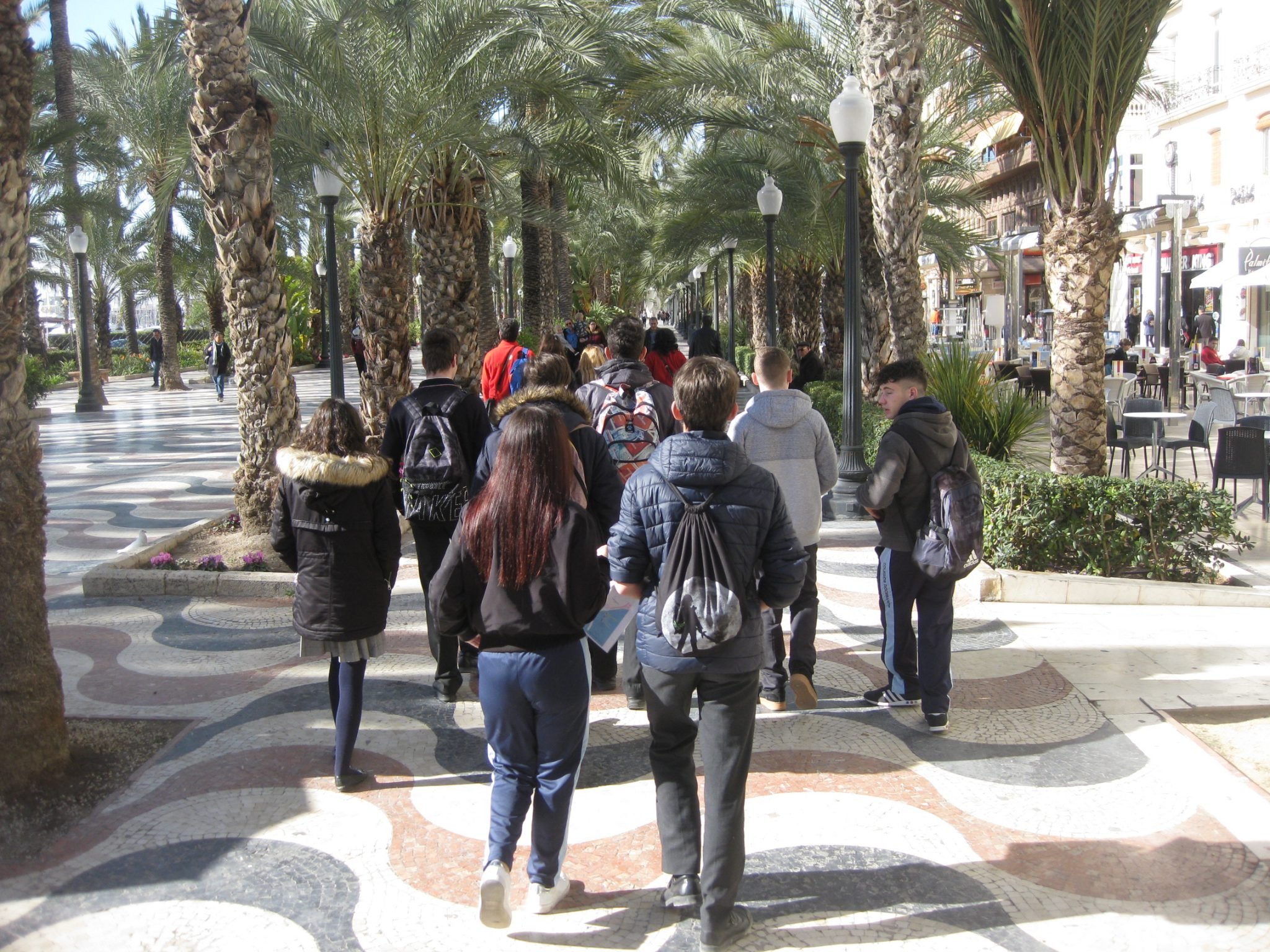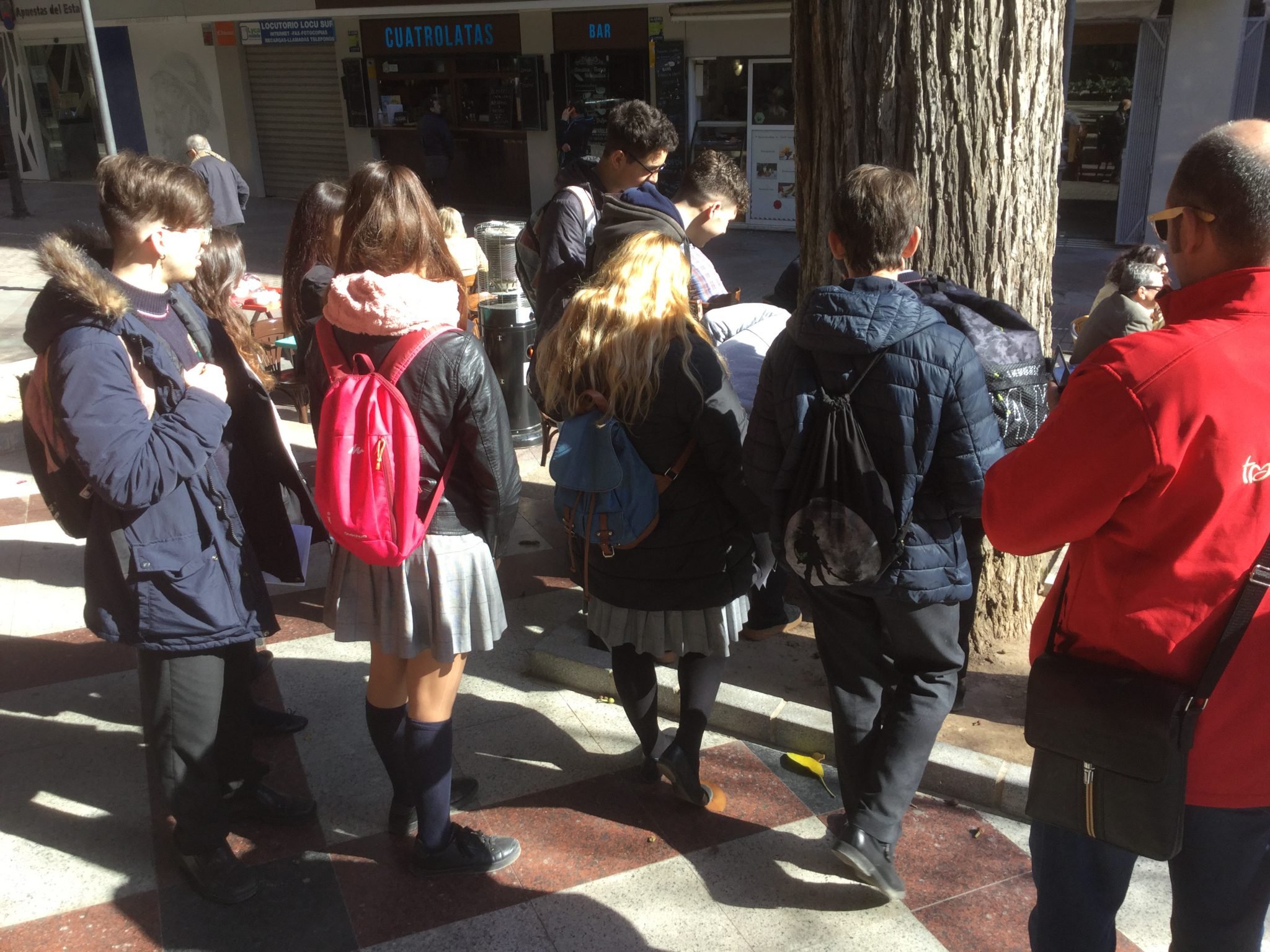 En la salida aprendimos que los árboles no son solo árboles, cada uno tiene su propia historia y esta tiene que ver con nuestra ciudad. A pesar de que vivimos en esta ciudad, la mayoría somos ignorantes de que estamos rodeados de restos históricos. En el lateral de la Iglesia de Santa María que da al Paseito Ramiro hay incrustadas en una fachada dos balas de cañón de un bombardeo que sufrió Alicante en 1691. En la Plaza del Mar al final de la Explanada en el suelo hay baldosas de color negro, que señalan el lugar en que antiguamente estaba la muralla de la ciudad, con la entrada al puerto. El árbol que más me llamó la atención fue el Ficus macrophylla que deja caer raíces aéreas para soportar el peso de las ramas. En la Plaza Calvo Sotelo hay un pino de tronco muy largo y recto, que solía utilizarse para fabricar los mástiles de los barcos. También aprendí a como se puede conocer la edad de los árboles sin serrarlos para contar los anillos en caso de que no existan registros históricos.