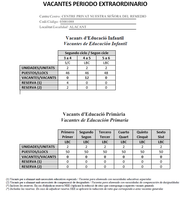 Contamos con vacantes en algunos niveles educativos. Para 3 años infantil contaremos con 46 puestos escolares. Se trata de vacantes provisionales seguramente, durante el proceso de admisión, se generen nuevas vacantes.