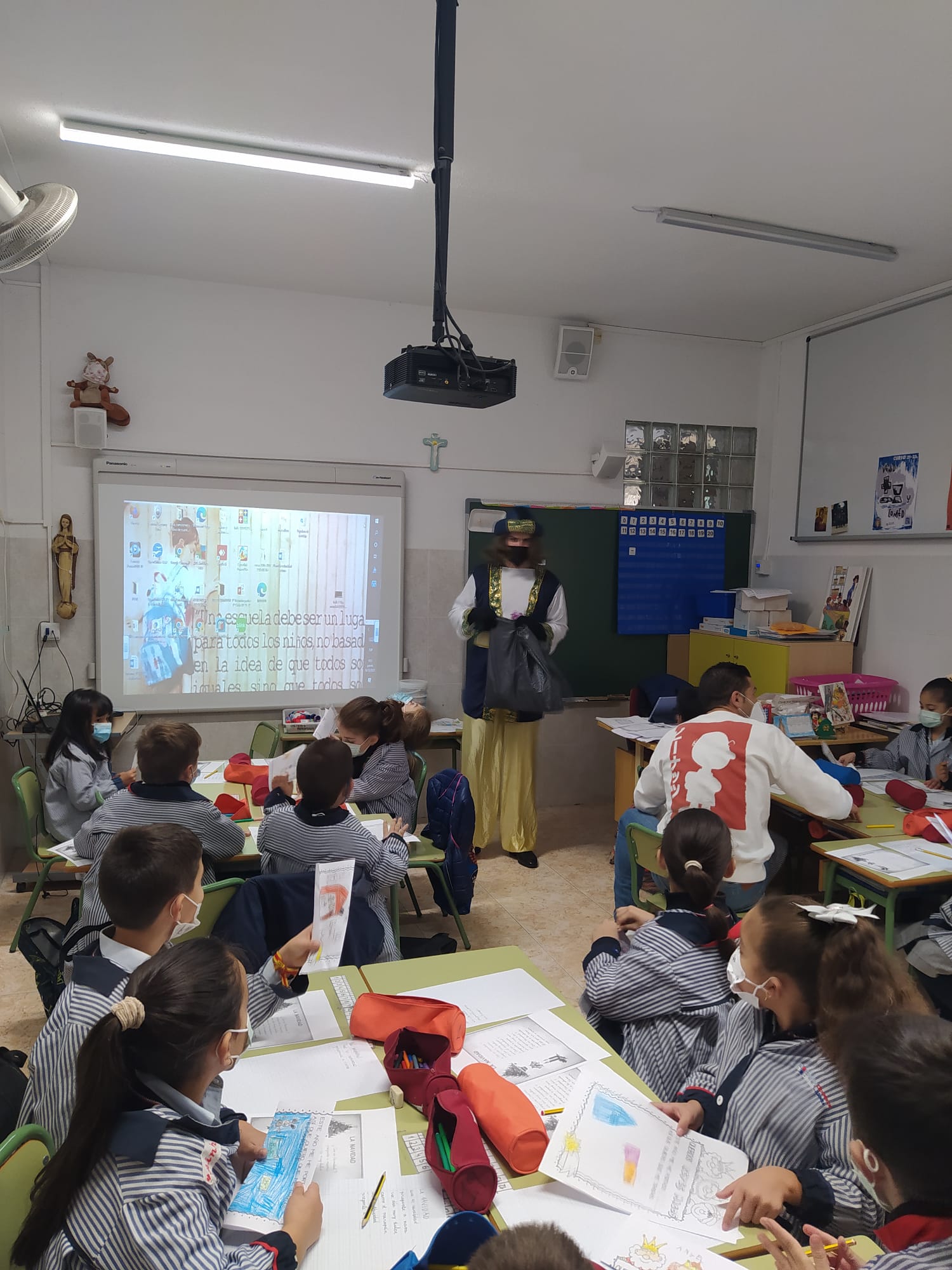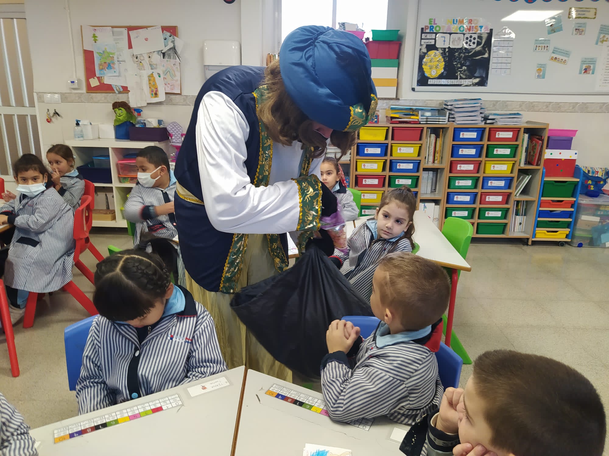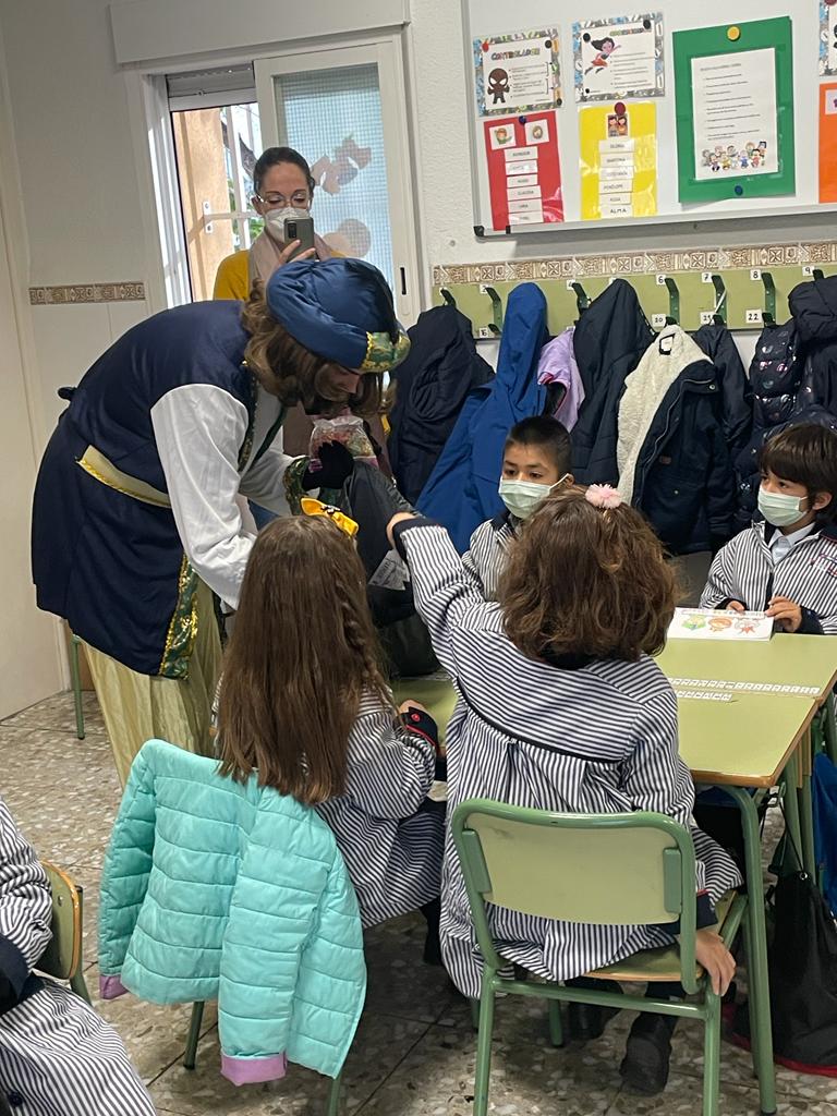 Este emisario nos trajo un Buzón Real, donde nuestros alumnos, sus hijos pudieron depositar las cartas dirigidas a SSMM. El emisario pudo hablar con nuestros alumnos y, entre otras cosas, nos dijo que las cartas de los alumnos de las etapa de ED.INF y de 1º y 2º ED.PRIM iban a ser contestadas personalmente por SSMM.