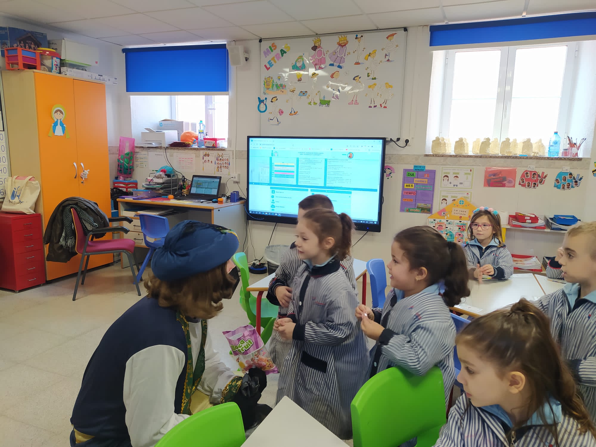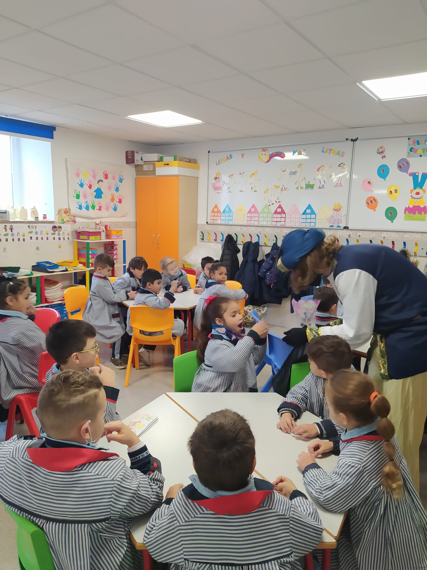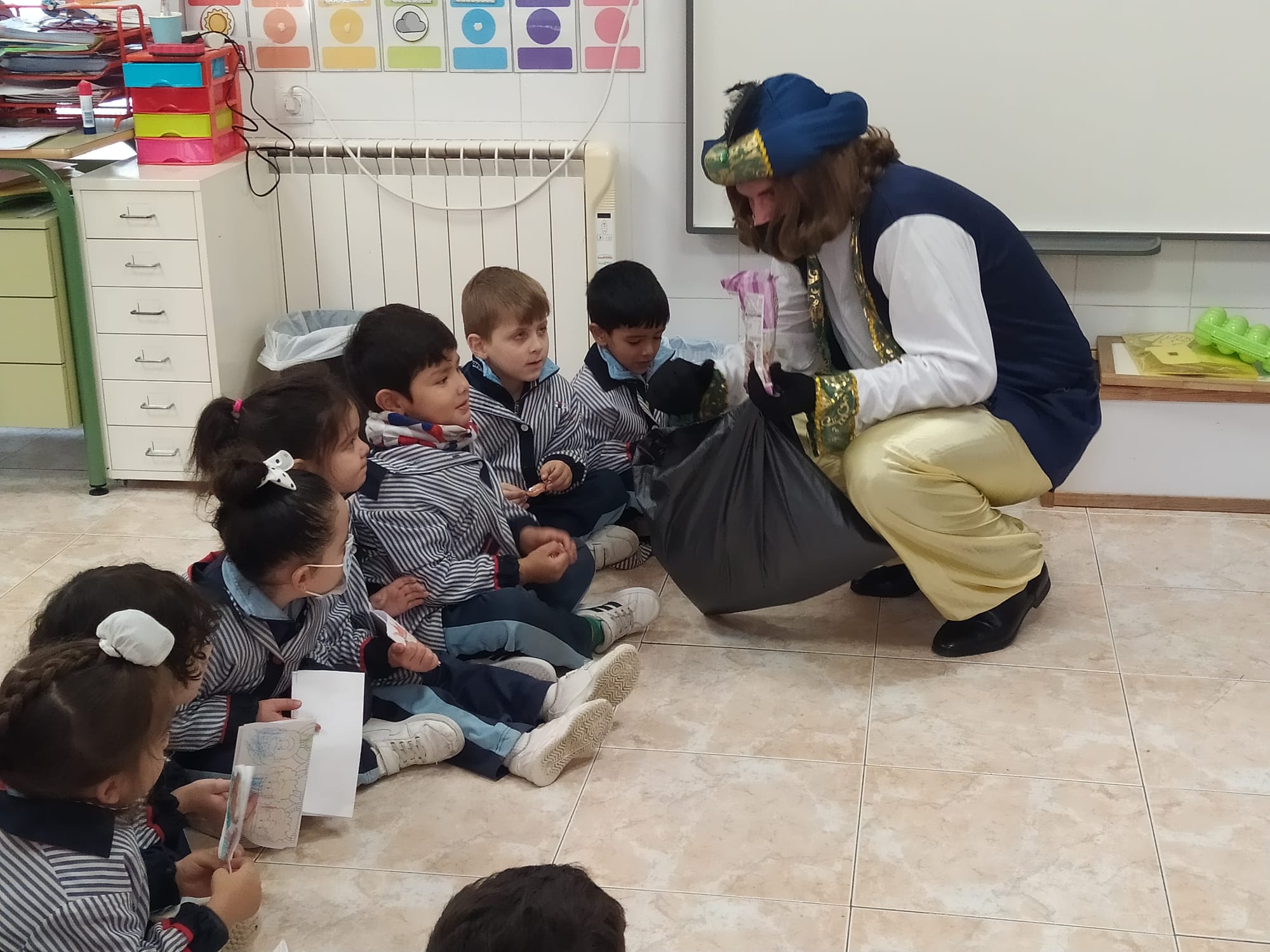 Este emisario nos trajo un Buzón Real, donde nuestros alumnos, sus hijos pudieron depositar las cartas dirigidas a SSMM. El emisario pudo hablar con nuestros alumnos y, entre otras cosas, nos dijo que las cartas de los alumnos de las etapa de ED.INF y de 1º y 2º ED.PRIM iban a ser contestadas personalmente por SSMM.